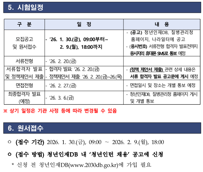 | 2026년 제1차 질병관리청 경남권질병대응센터 청년인턴 채용 공고 | |||